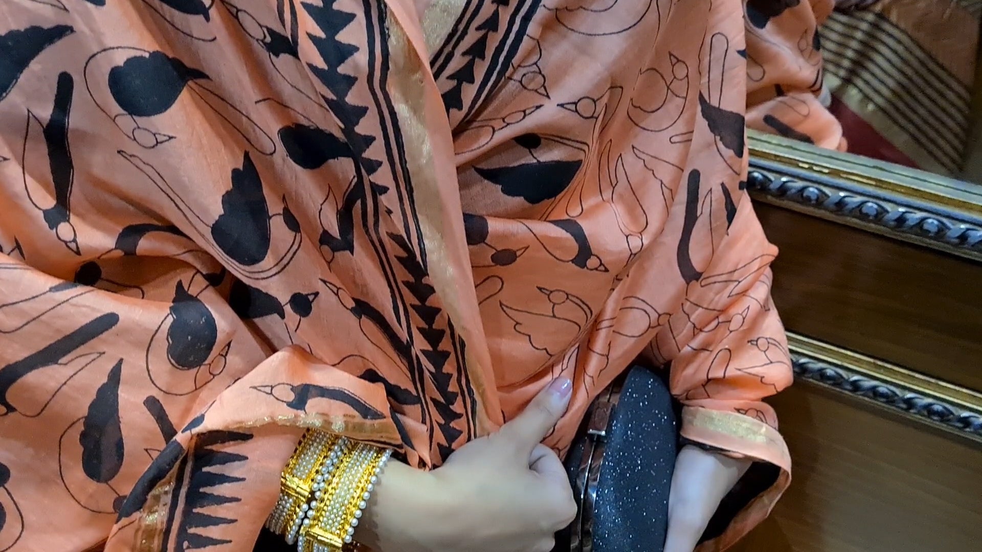 - Uniqueness: Experience the timeless elegance of our Designer Chanderi Handloom handblock printed sarees. Each exquisite piece is adorned with intricate motifs—some meticulously drawn by talented tribal Gond artist Ravi Kumar Tekam. This saree is the result of close collaboration between skilled artisans and visionary designers. Make a statement with your style, celebrate Bharat’s cultural heritage, and feel proud, stylish, and elegant in ANA.S DESIGNER LABEL exclusive handblock printed sarees. Cherish the beauty of storytelling through art.